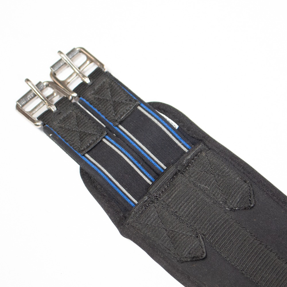Der Langgurt von Stübben ist aus Neopren gefertigt. Der Sattelgurt hat einseitige Elastikeinsätze, Rollschnallen und ist 90 cm lang. Er hat einen D-Ring in der Mitte. Der Sattelgurt hat leichte Gebrauchsspuren.