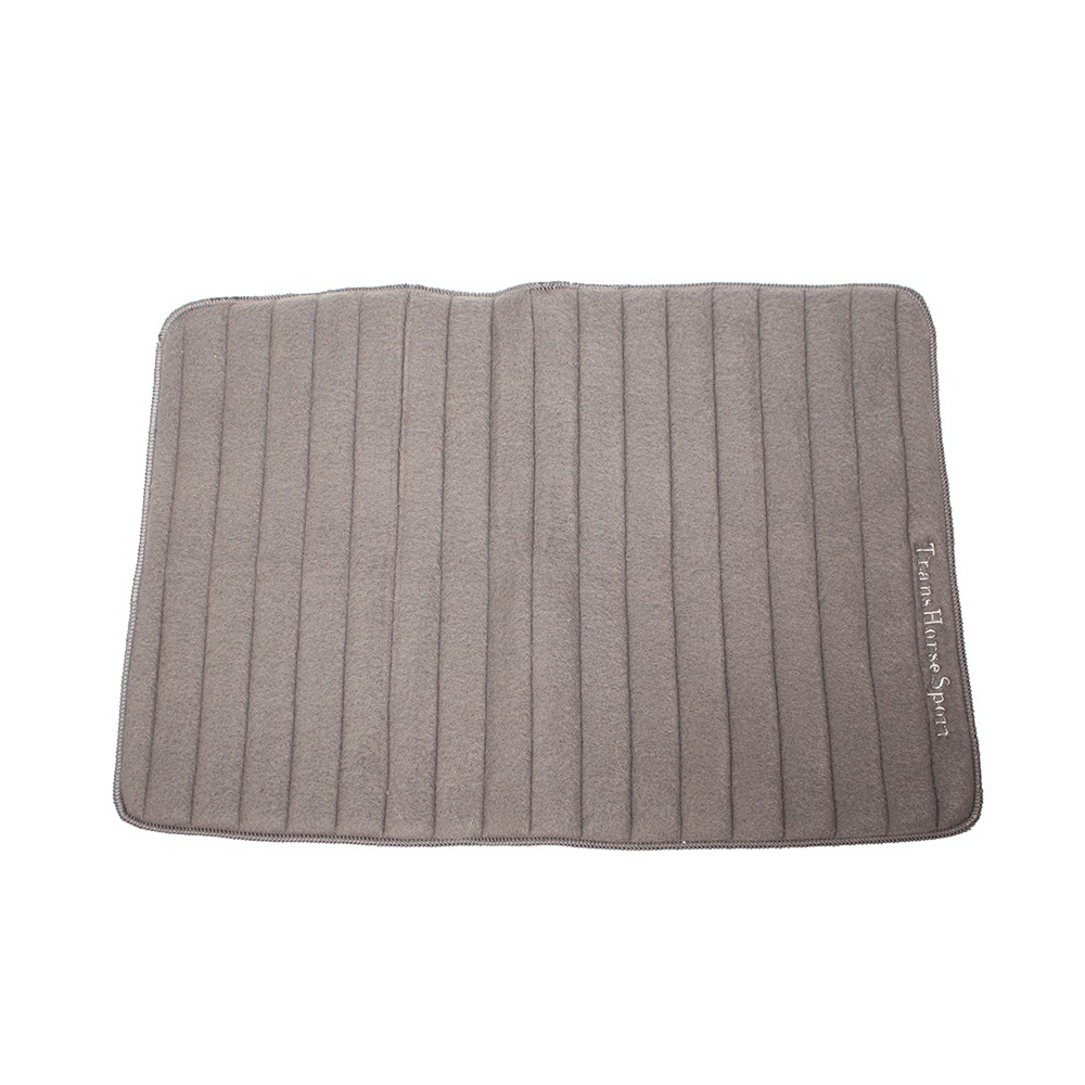 Die Bandagierunterlagen von TransHorseSport sind 40 x 45 cm groß und kommen im 2er Set. Sie sind grau. Die Unterlagen sind neu.