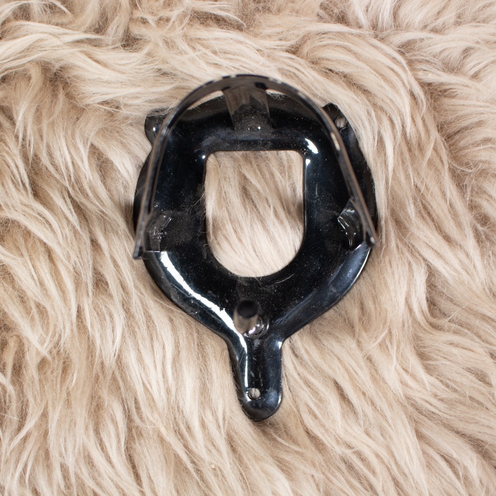 Die Trensenhalter sind aus Metall und sind schwarz. Sie haben leichte Gebrauchsspuren.